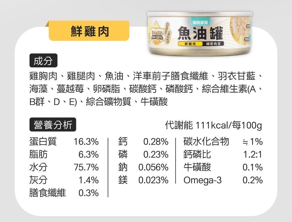 魚油添加量符合貓咪每日攝取需求