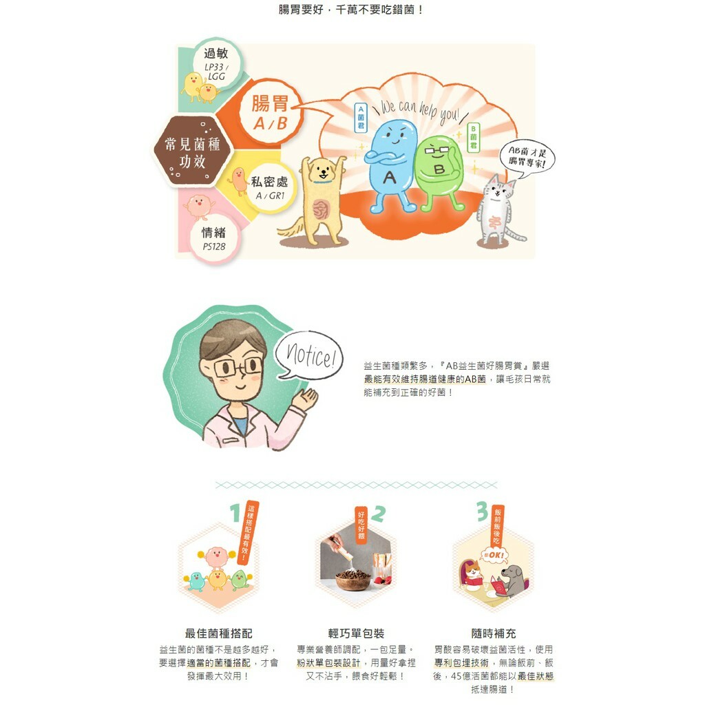 嚴選*專利AB益菌,幫助維持消化道機能