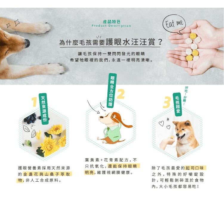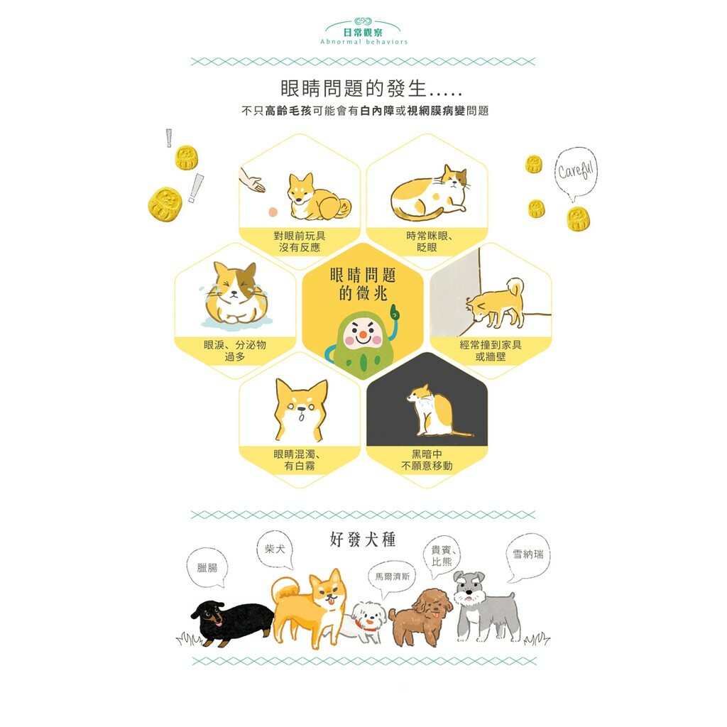 葉黃素+花青素的天然護眼配方,協助毛孩保護視力健康!