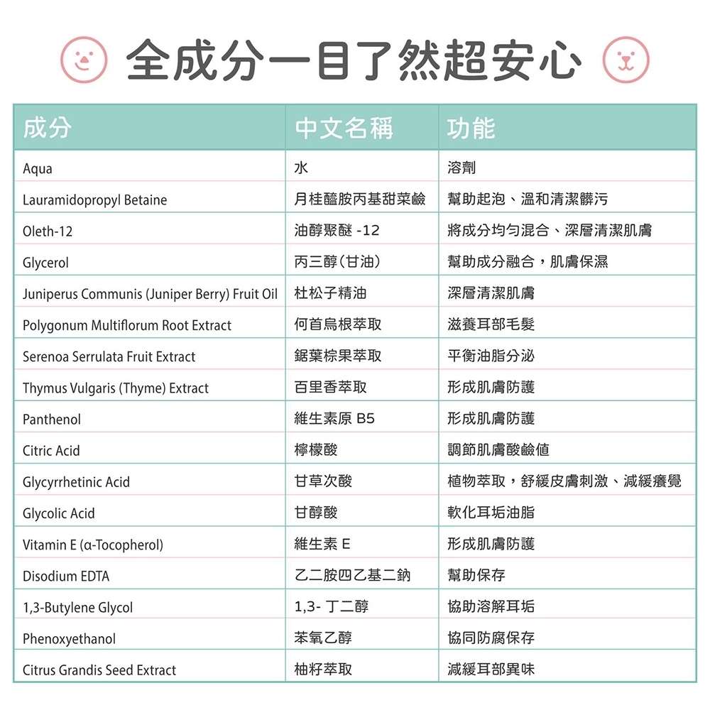 ①甘醇酸 → 軟化耳垢油脂
