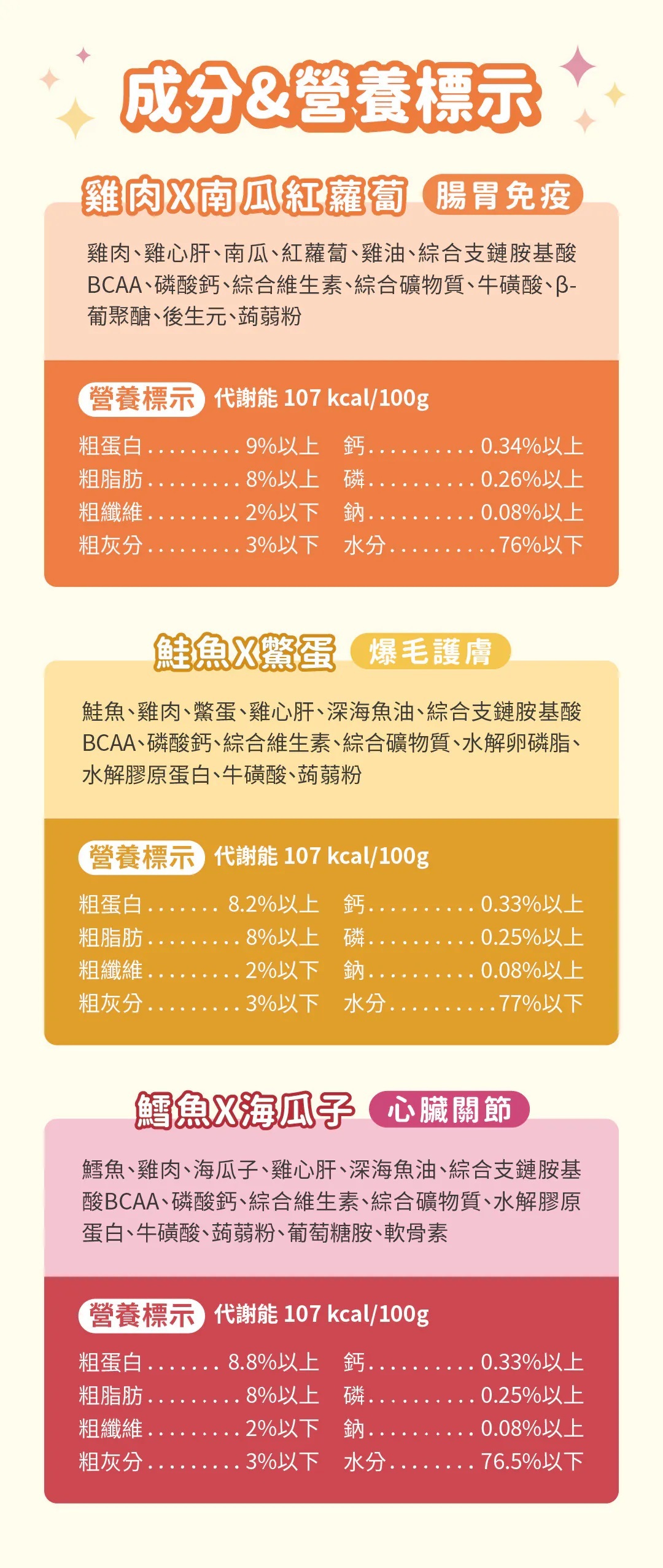 ✓ 不含人工色素、防腐劑及穀物,健康安全無負擔
